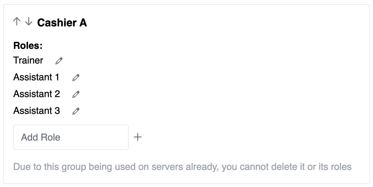 It's important to know that once a role group has been added to a server, you can't delete any roles from it to prevent attendance from being removed accidentally.