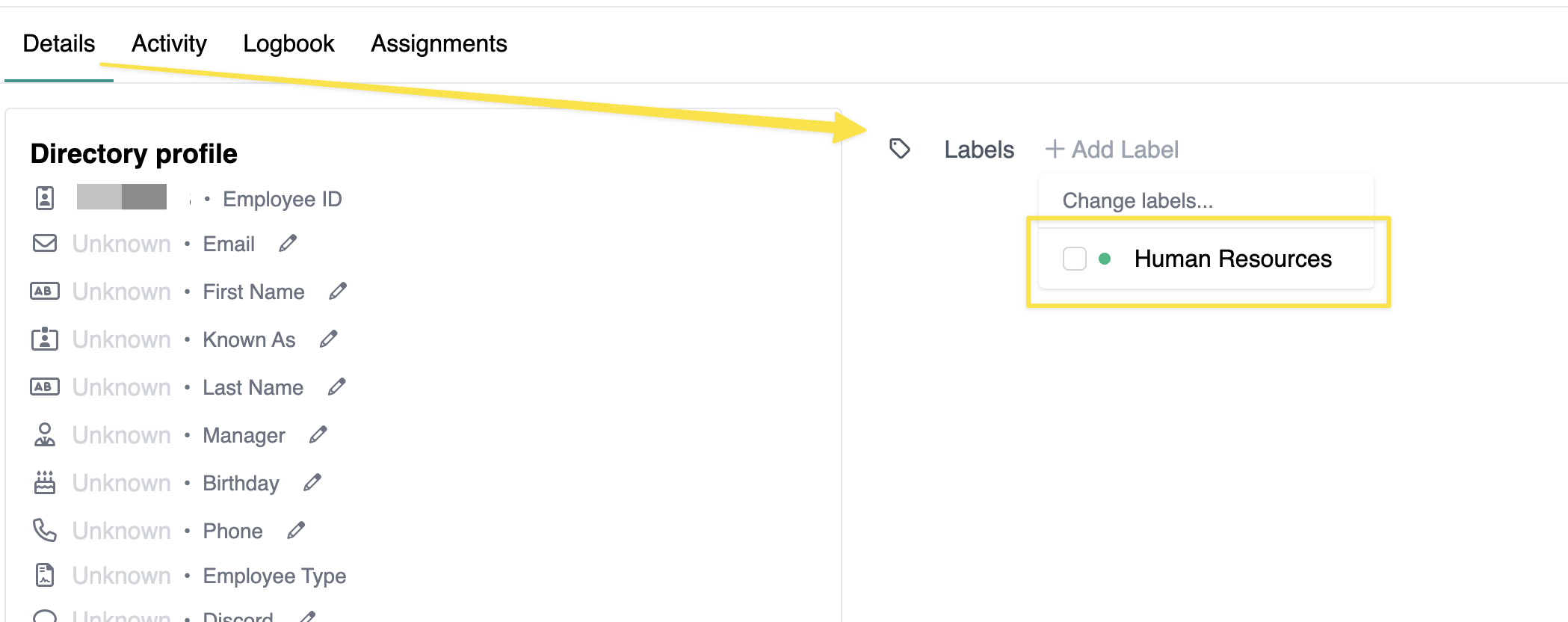 To add a label, go to the Staff Profile and in Labels, click "Add Label"